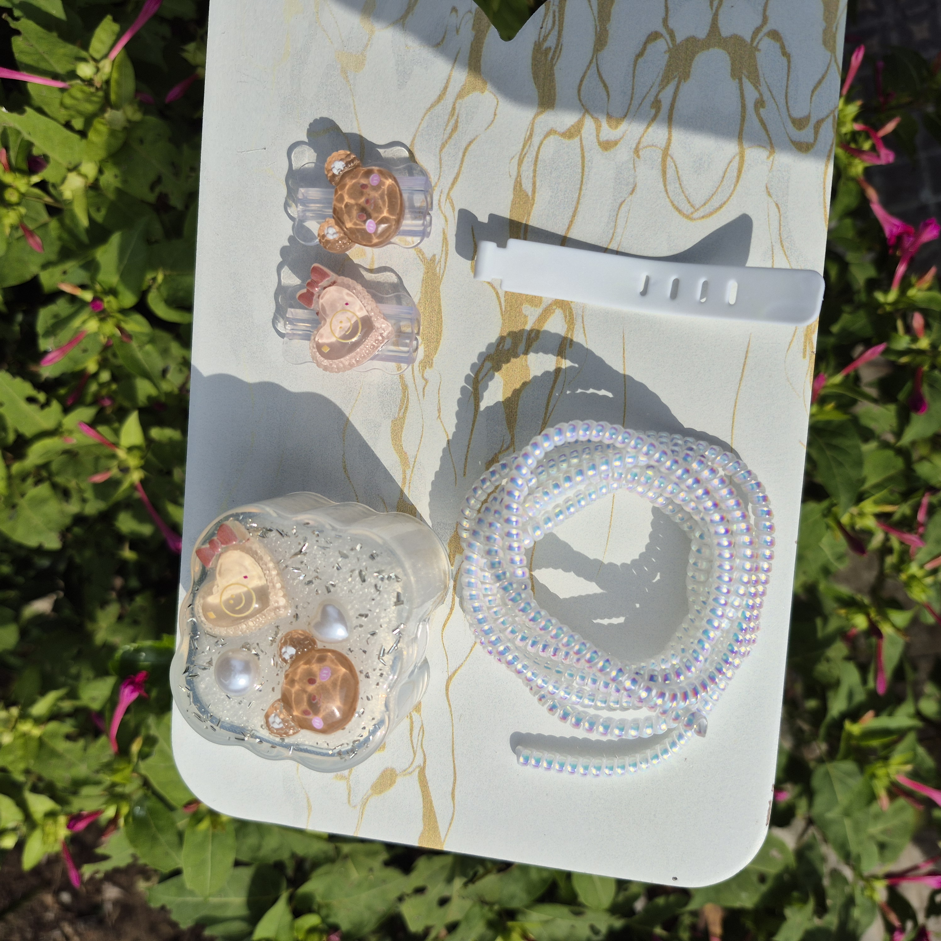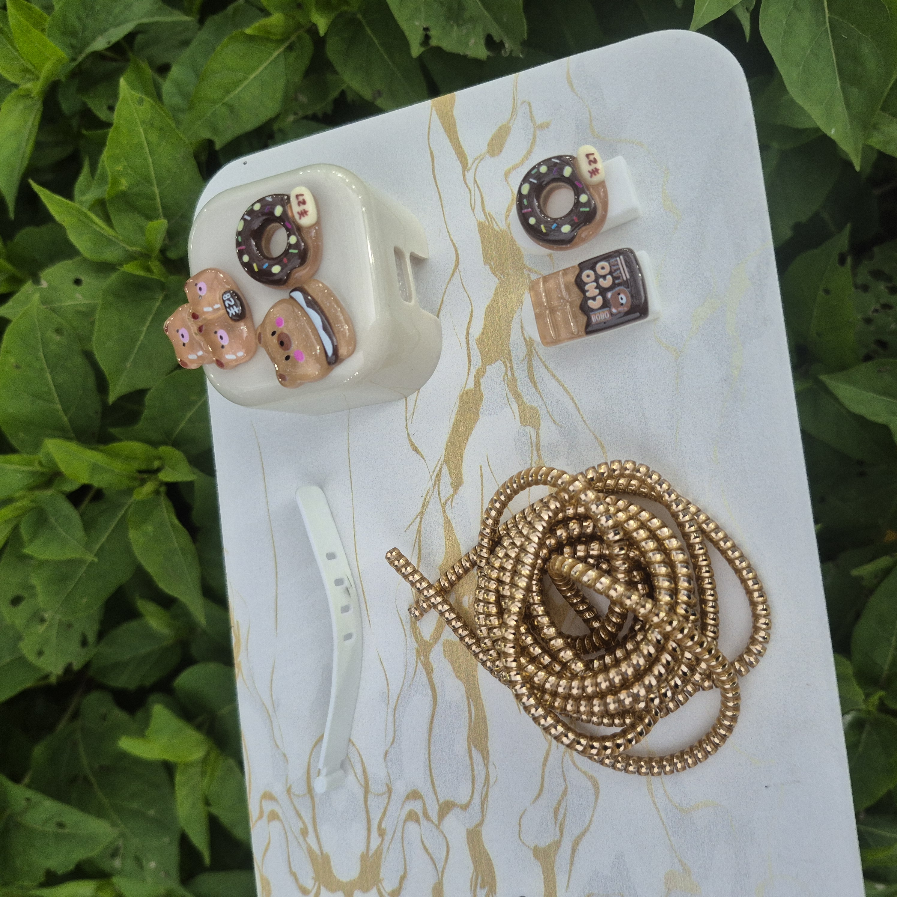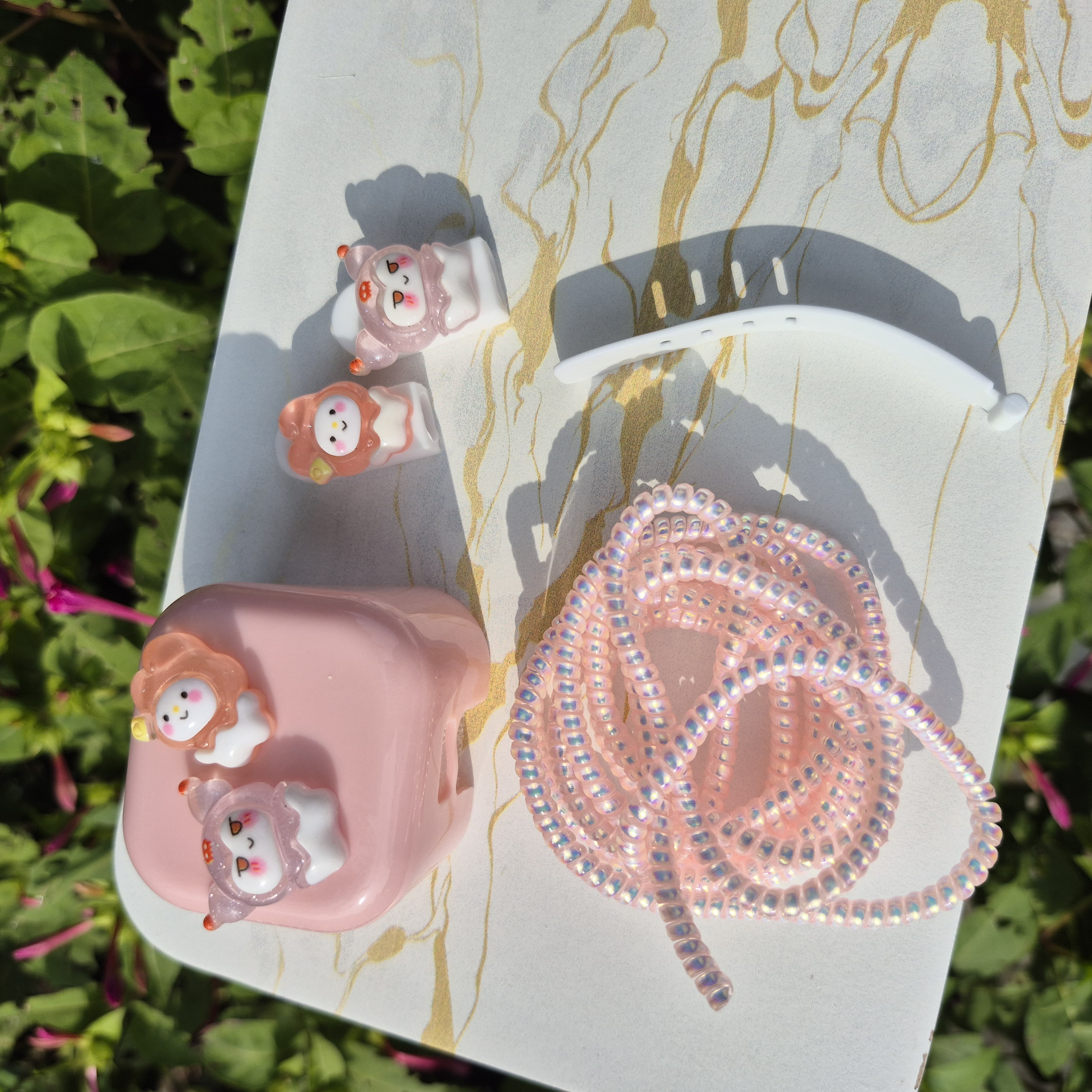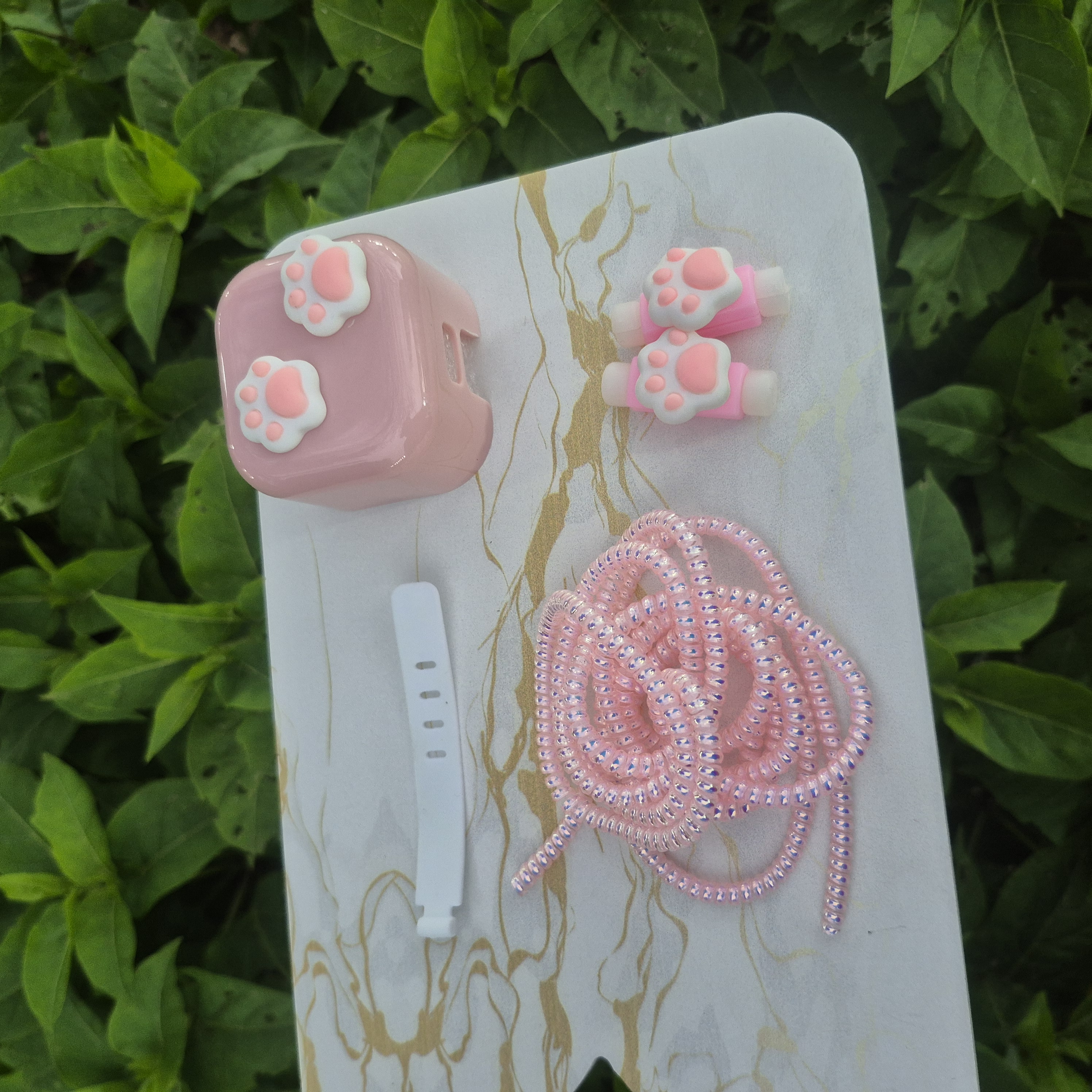 1 عدد محافظ آداپتورعروسکی+ 1 عدد محافظ کابل رنگی+1 عدد کابل جمع کن+2 عدد سر محافظ کابل عروسکی